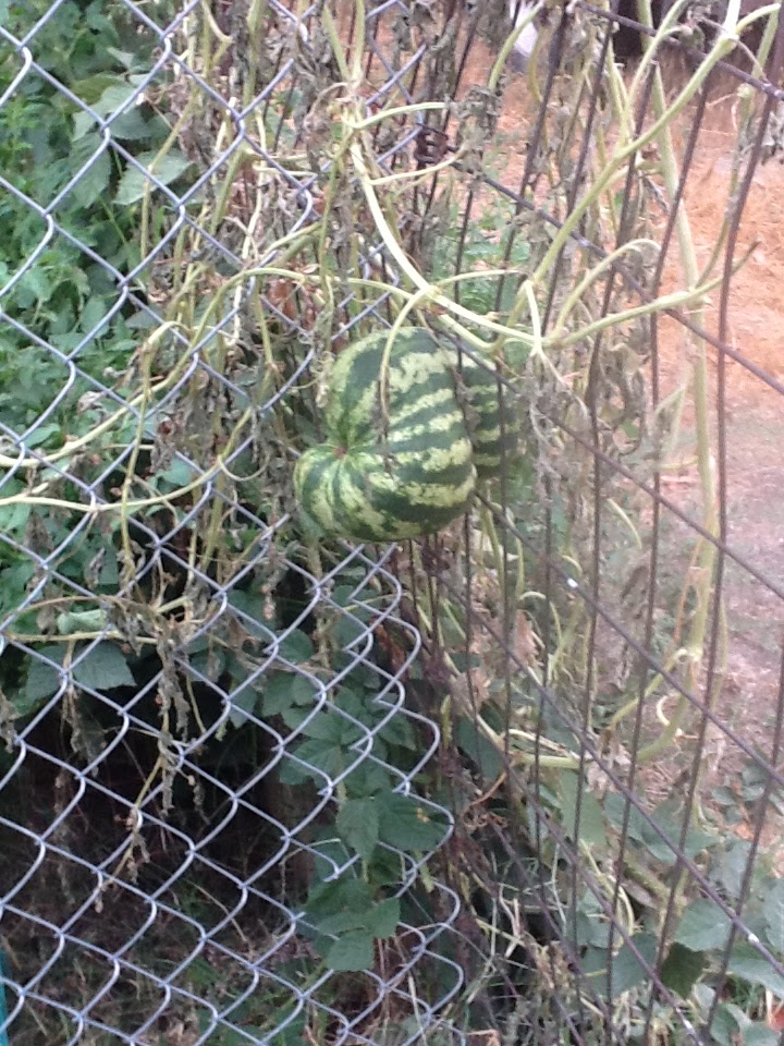 I ended up trying to remove the last remaining (and larger) watermelon from the fence, but ended up breaking it instead, as it was really wedged in there.